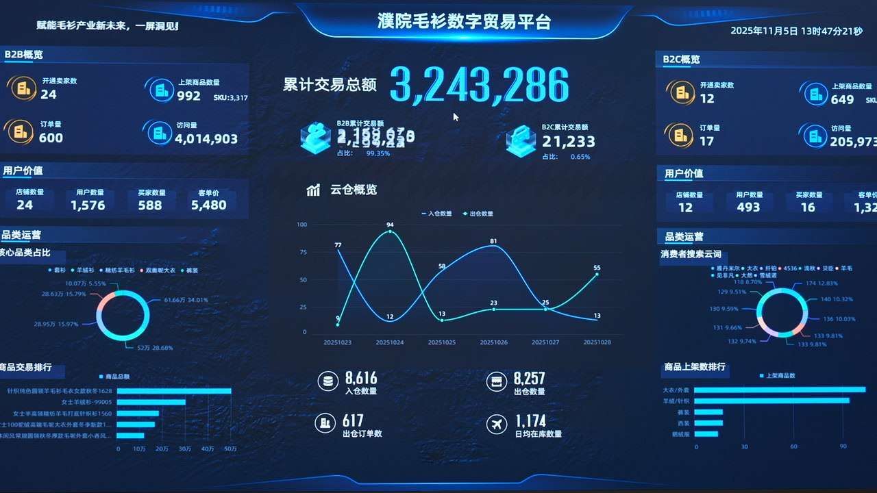 “我们近期主要专注在B to B的内贸部分,我们已经上线的是B to B的内贸商城和B to C的小程序,远期的话,我们2026年一季度计划上线B to B的外贸部分,我们会把整个的外贸链路全部都数字化,然后提供很多智能化的工具给到我们的企业。”“濮院毛衫”数字贸易平台开发企业行云集团首席技术官余青介绍。